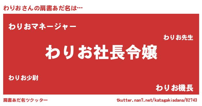 | 男性向けラノベタイトル風あだ名 | 『わりおの憂鬱』『ワリオスレイヤー』 |
