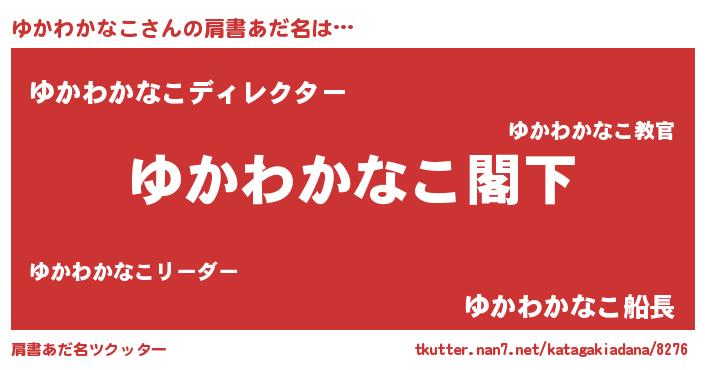 | 女子向けラノベタイトル風あだ名 | 『ゆかわかなこストレイドッグス』 |