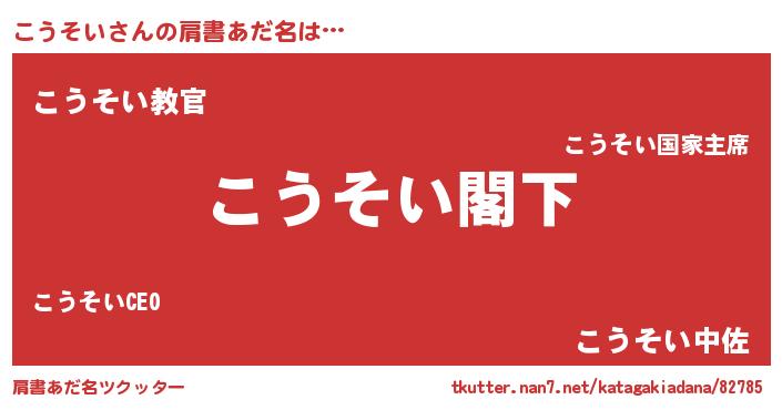 | 男性向けラノベタイトル風あだ名 | 『Re:こうそいから始める異世界生活』 |