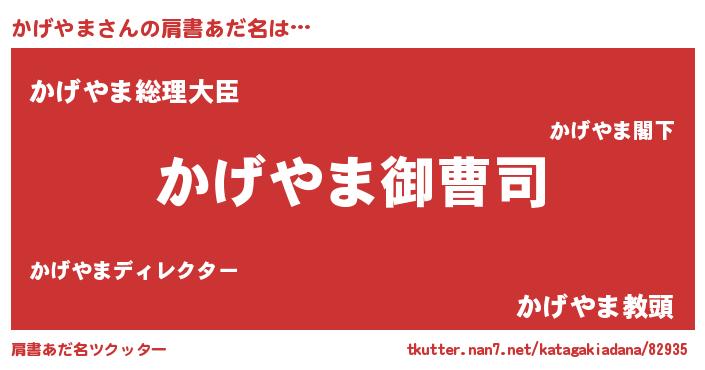 | ヘコむあだ名 | 『かげっふぃ~』『なまこ酢』 |