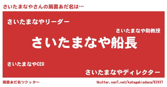 | 意味不明あだ名 | 『とにかく怪しいさいたまなや』 |