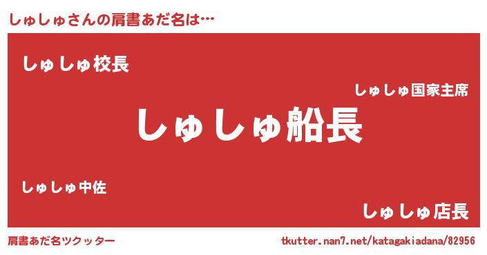 | 男性向けラノベタイトル風あだ名 | 『うちのしゅしゅが世界を掌握している!』 |