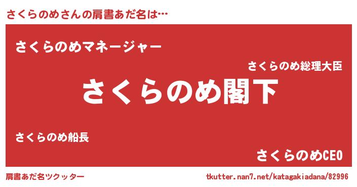 | 女子向けラノベタイトル風あだ名 | 『さくらのめなんてお断りですっ。』 |