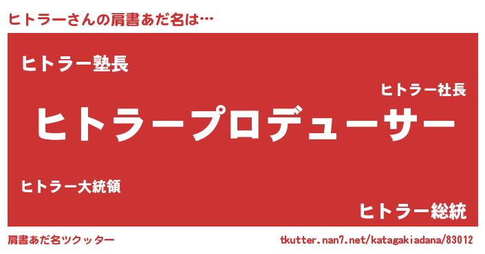 | 男性向けラノベタイトル風あだ名 | 『はたらくヒトラーさま!』 |