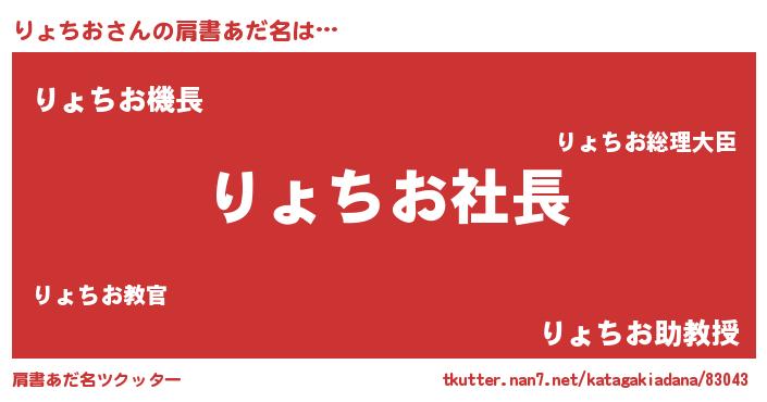 | ヒーロー風カッコイイあだ名 | 『スーパーリョチオ』『仮面リョダー』 |
