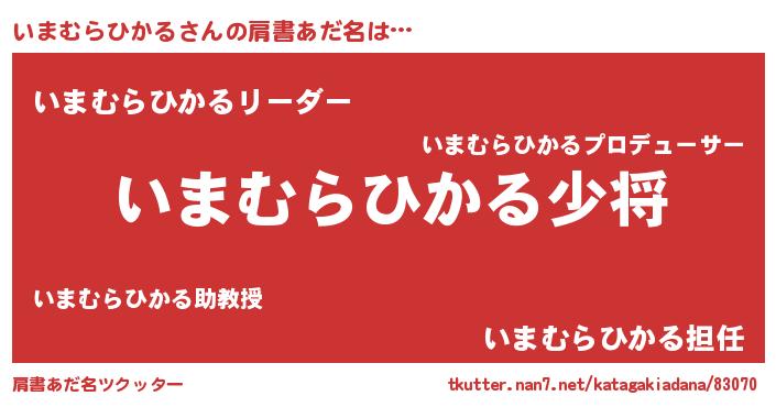 | ポケモン風あだ名 | 『イマキング』『ヒイマムラヒカル』 |