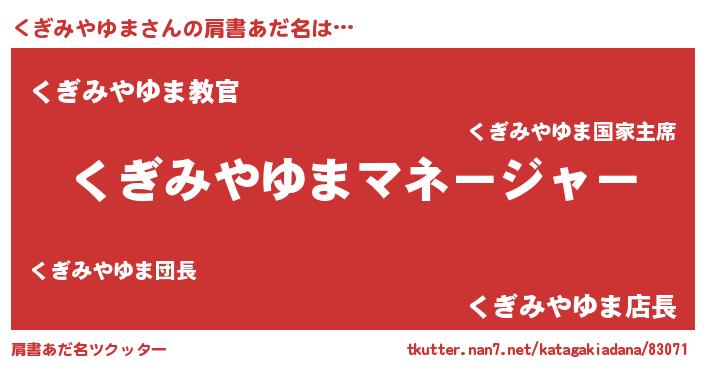 | ヒーロー風カッコイイあだ名 | 『仮面クギダー』『スーパークギミヤユマ』 |