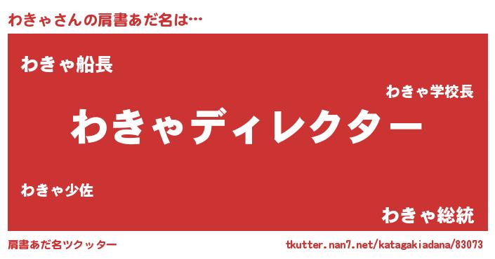 | 男性向けラノベタイトル風あだ名 | 『はたらくわきゃさま!』『緋弾のワキャ』 |