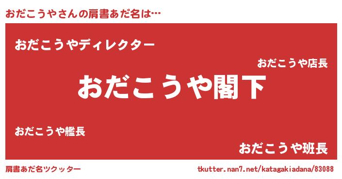 | 女子向けラノベタイトル風あだ名 | 『おだこうやなんてお断りですっ。』 |