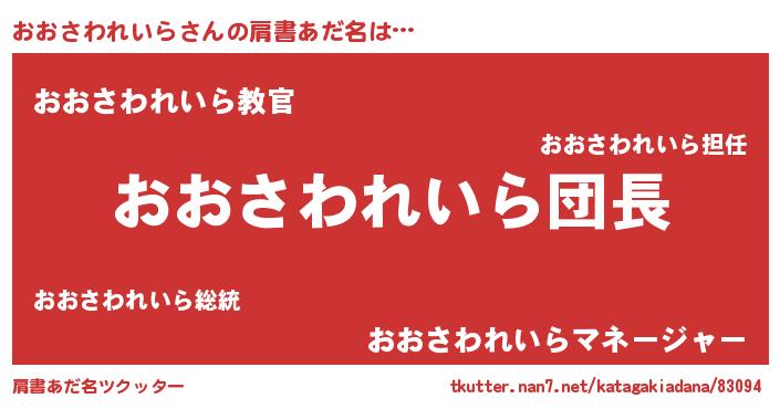 | 意味不明あだ名 | 『とにかく怪しいおおさわれいら』 |