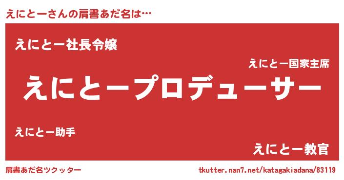 | 意味不明あだ名 | 『ペロリンえにとー』『永久保存えにとー』 |
