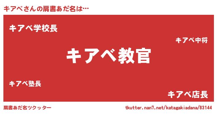 | 男性向けラノベタイトル風あだ名 | 『魔弾の王とキアベ』『キアベの憂鬱』 |