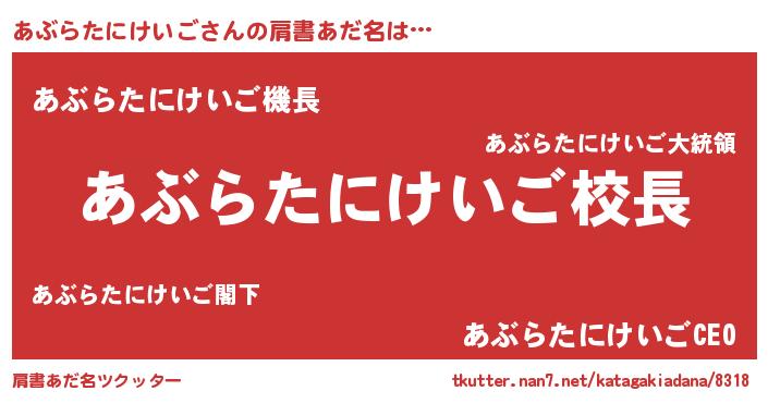 | ヘコむあだ名 | 『あぶらたにけいご(笑)』『あぶもー』 |