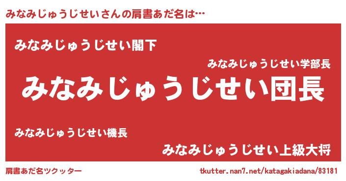| ポケモン風あだ名 | 『ヒミナミジュウジセイ』『ミナセウス』 |