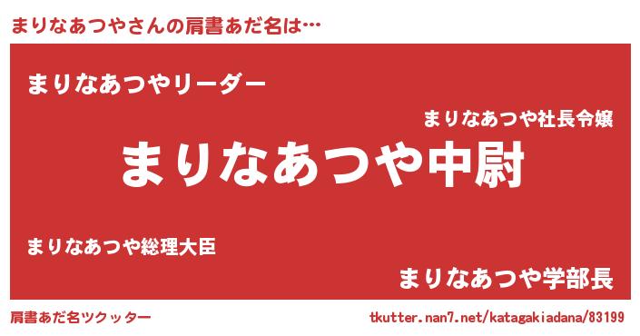 | 男性向けラノベタイトル風あだ名 | 『マリナアツヤスレイヤー』 |