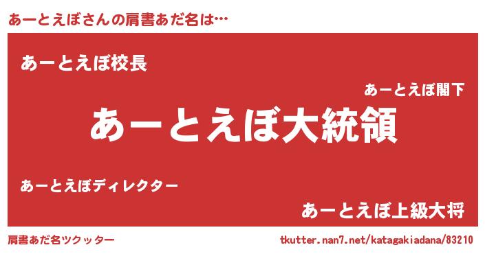 | 意味不明あだ名 | 『あーとえぼフォーエバー』 |