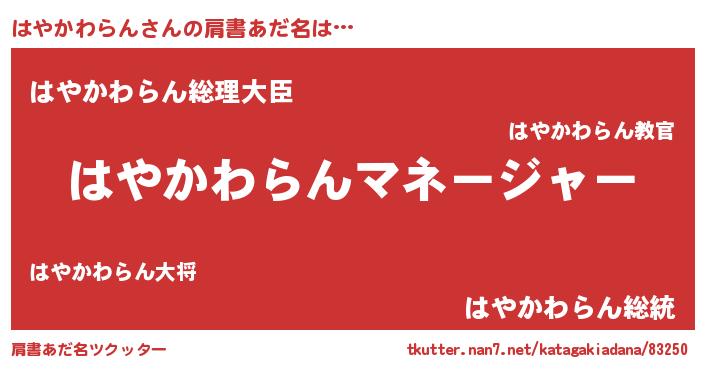 | 意味不明あだ名 | 『はやかわらんフォーエバー』 |