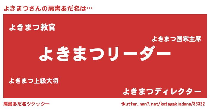 | 意味不明あだ名 | 『とにかく怪しいよきまつ』 |