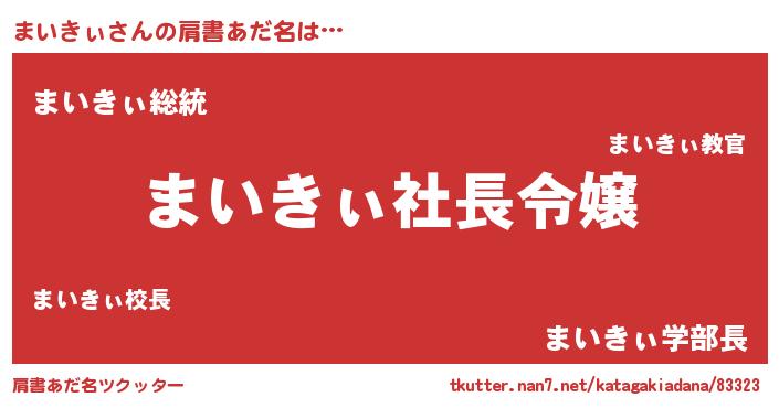 | 意味不明あだ名 | 『ペロリンまいきぃ』『自称まいきぃ』 |