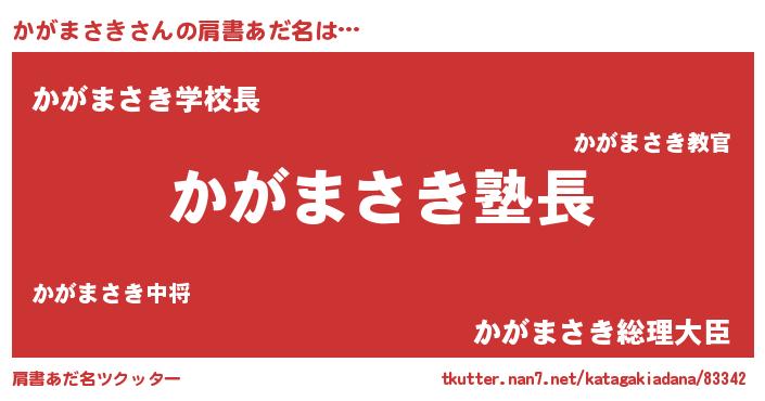 | 意味不明あだ名 | 『とにかく怪しいかがまさき』 |
