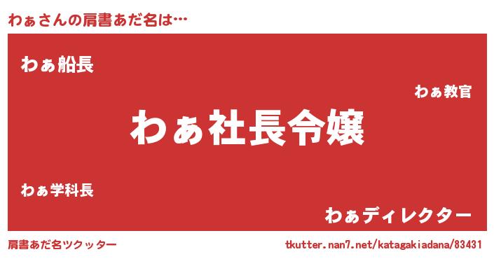 | 胡散臭い通販商品みたいなあだ名 | 『モテモテ間違いなし霊験あらたかなお札…その名も「わぁ」』 |