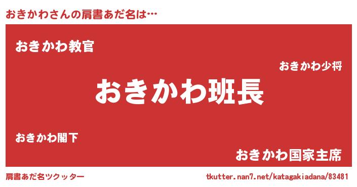 | 意味不明あだ名 | 『とにかく怪しいおきかわ』 |