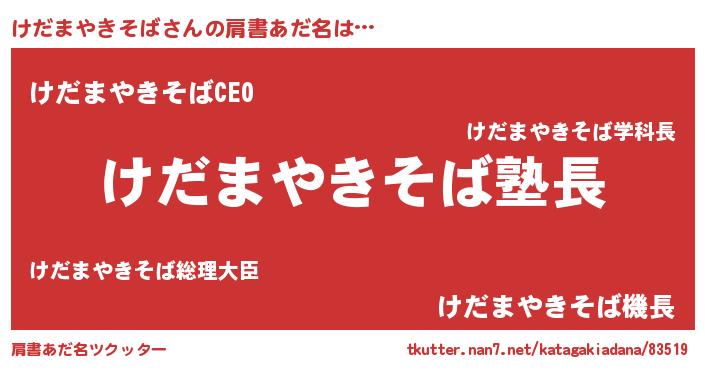 | 意味不明あだ名 | 『とにかく怪しいけだまやきそば』 |