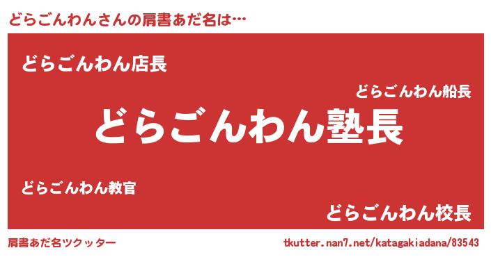 | 意味不明あだ名 | 『とにかく怪しいどらごんわん』 |