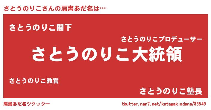 | 意味不明あだ名 | 『さとうのりこフォーエバー』 |