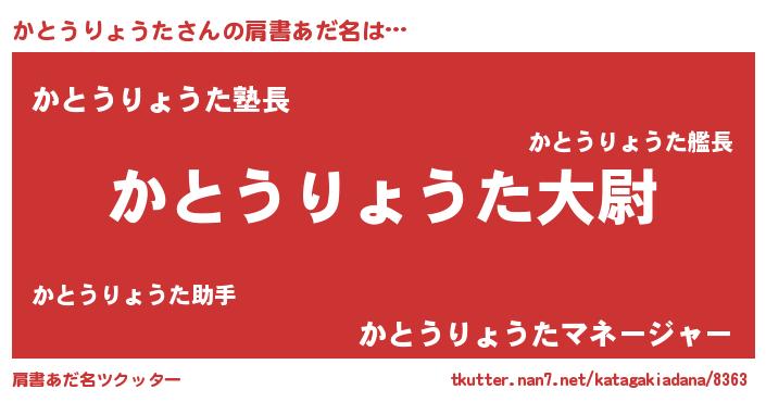 | 料理風あだ名 | 『かとうりょうたごはん』 |