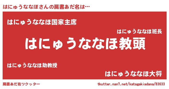 | 男性向けラノベタイトル風あだ名 | 『はにゅうななほという概念が存在しない退屈な世界 』 |
