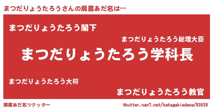| 男性向けラノベタイトル風あだ名 | 『おまえをオタクにしてやるから、俺をまつだりょうたろうにしてくれ! 』 |