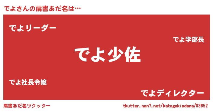 | 男性向けラノベタイトル風あだ名 | 『転生したらでよだった件』『でよの憂鬱』 |
