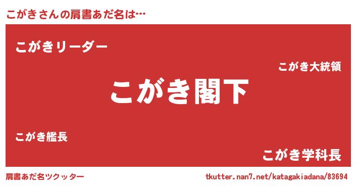 | ヒーロー風カッコイイあだ名 | 『最強戦士コガキ』『幻影騎士コガ』 |