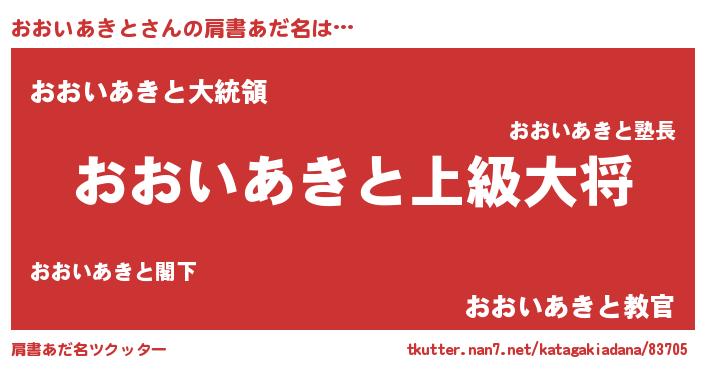 | 男性向けラノベタイトル風あだ名 | 『転生したらおおいあきとだった件』 |