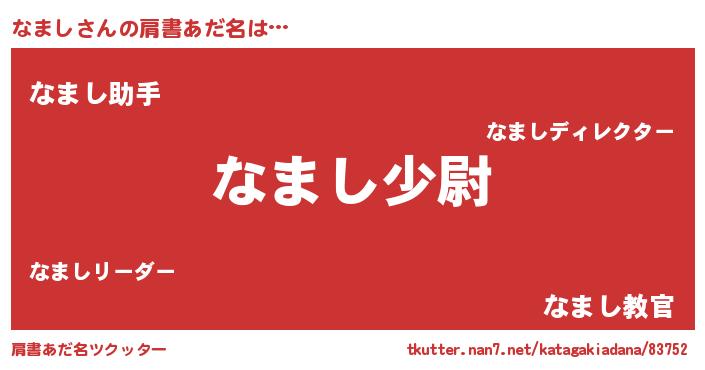 | 意味不明あだ名 | 『なめこ科なまし属』『自称なまし』 |