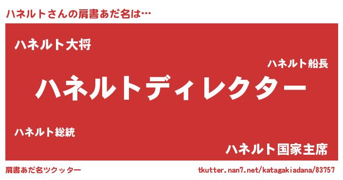 | 男性向けラノベタイトル風あだ名 | 『はたらくハネルトさま!』 |