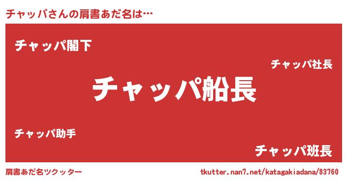 | ヒーロー風カッコイイあだ名 | 『ウルトラ戦士チャッパ』『魔戒騎士チャ』 |