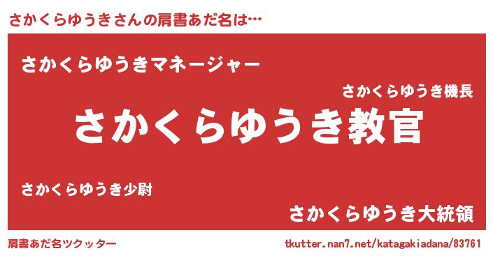 | 男性向けラノベタイトル風あだ名 | 『この素晴らしい世界にさかくらゆうきを!』 |