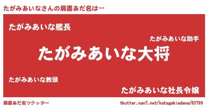 | ヘコむあだ名 | 『たがっふぃ~』『たがみあいな(苦笑)』 |