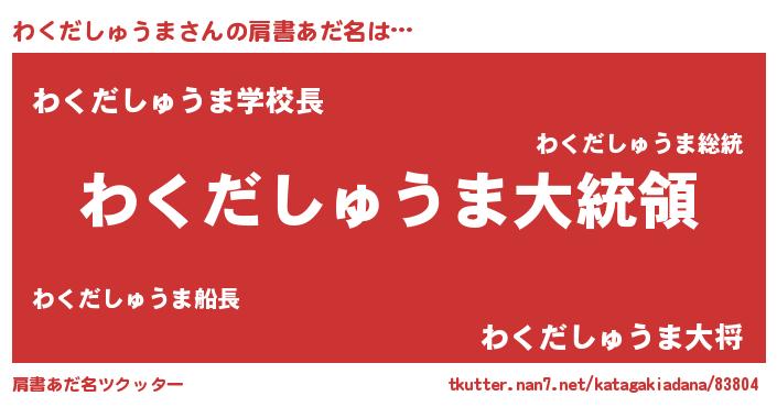 | 男性向けラノベタイトル風あだ名 | 『やはりわくだしゅうまの青春ラブコメはまちがっている 』 |