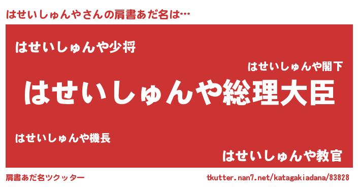 | 意味不明あだ名 | 『はせいしゅんやフォーエバー』 |