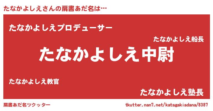 | 男性向けラノベタイトル風あだ名 | 『タナカヨシエスレイヤー』 |