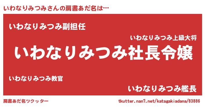 | 胡散臭い通販商品みたいなあだ名 | 『必ず成功する霊験あらたかなお札…その名も「いわなりみつみ」』 |