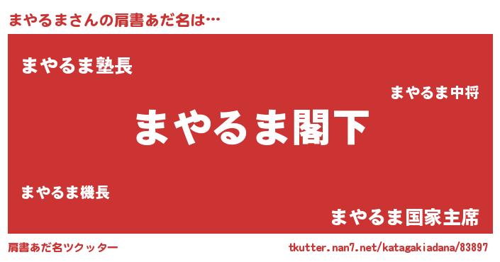 | 男性向けラノベタイトル風あだ名 | 『Re:まやるまから始める異世界生活』 |