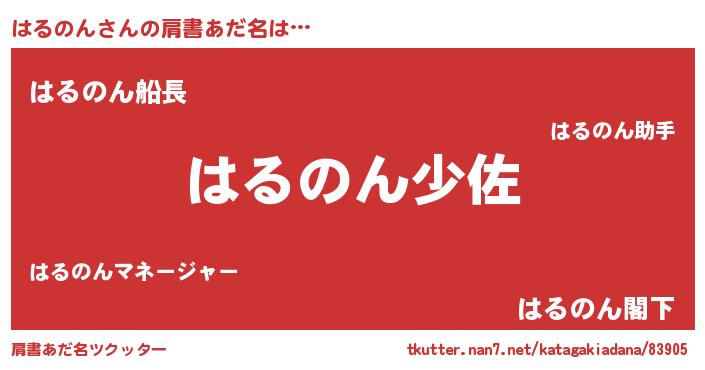 | 意味不明あだ名 | 『ニラ科はるのん属』『自称はるのん』 |
