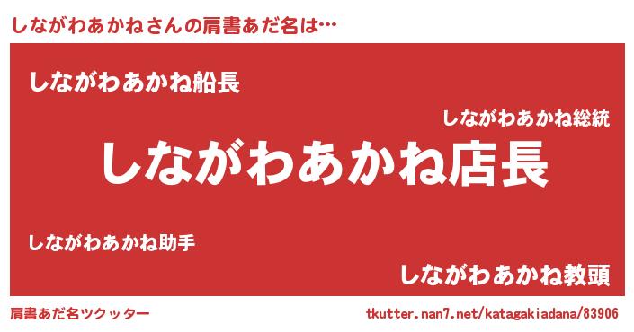 | 男性向けラノベタイトル風あだ名 | 『シナガワアカネアートオンライン』 |