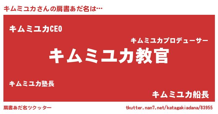 | 男性向けラノベタイトル風あだ名 | 『この素晴らしい世界にキムミユカを!』 |