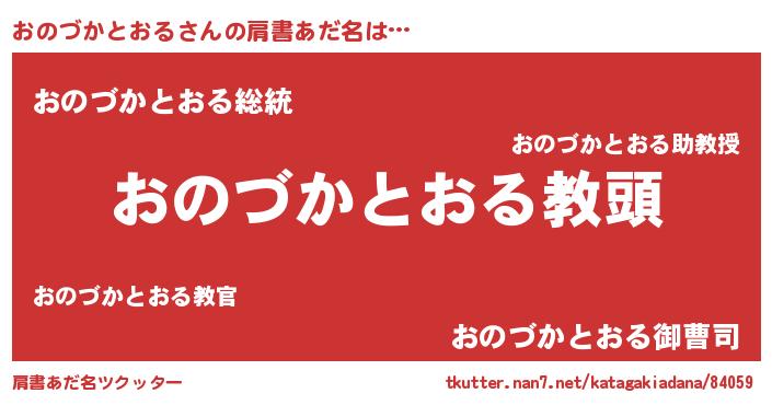 | 男性向けラノベタイトル風あだ名 | 『誰もが恐れるあのおのづかとおるが、ぼくの専属メイドになるようです。』 |