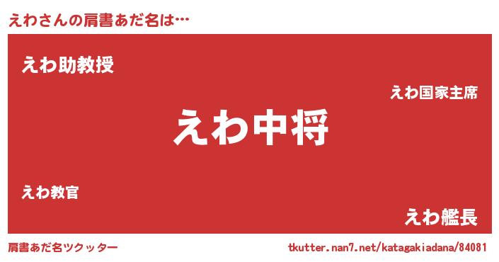 | 意味不明あだ名 | 『ヨモギ科えわ属』『えわフォーエバー』 |